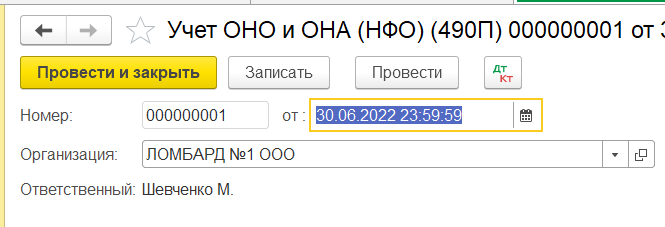 Документ «Учет ОНО и ОНА (НФО) (490-П)» находится по пути: «Учет НФО» → «Регламентные операции НФО» → «Учет ОНО и ОНА (НФО) (490-П)»: