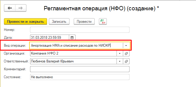 6. Начисление амортизации НМА (также регламентной операцией НФО)