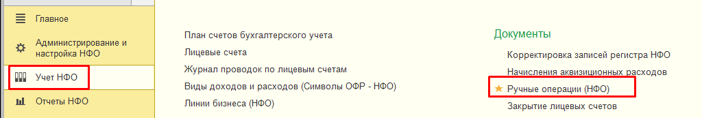 9. Доступны операции в рамках регламентных операций по НФО: