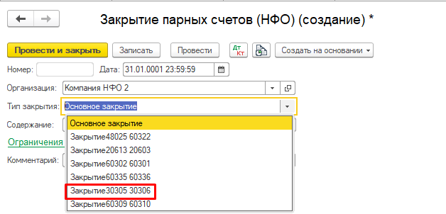 Закрытие парных по счету 60305-06: